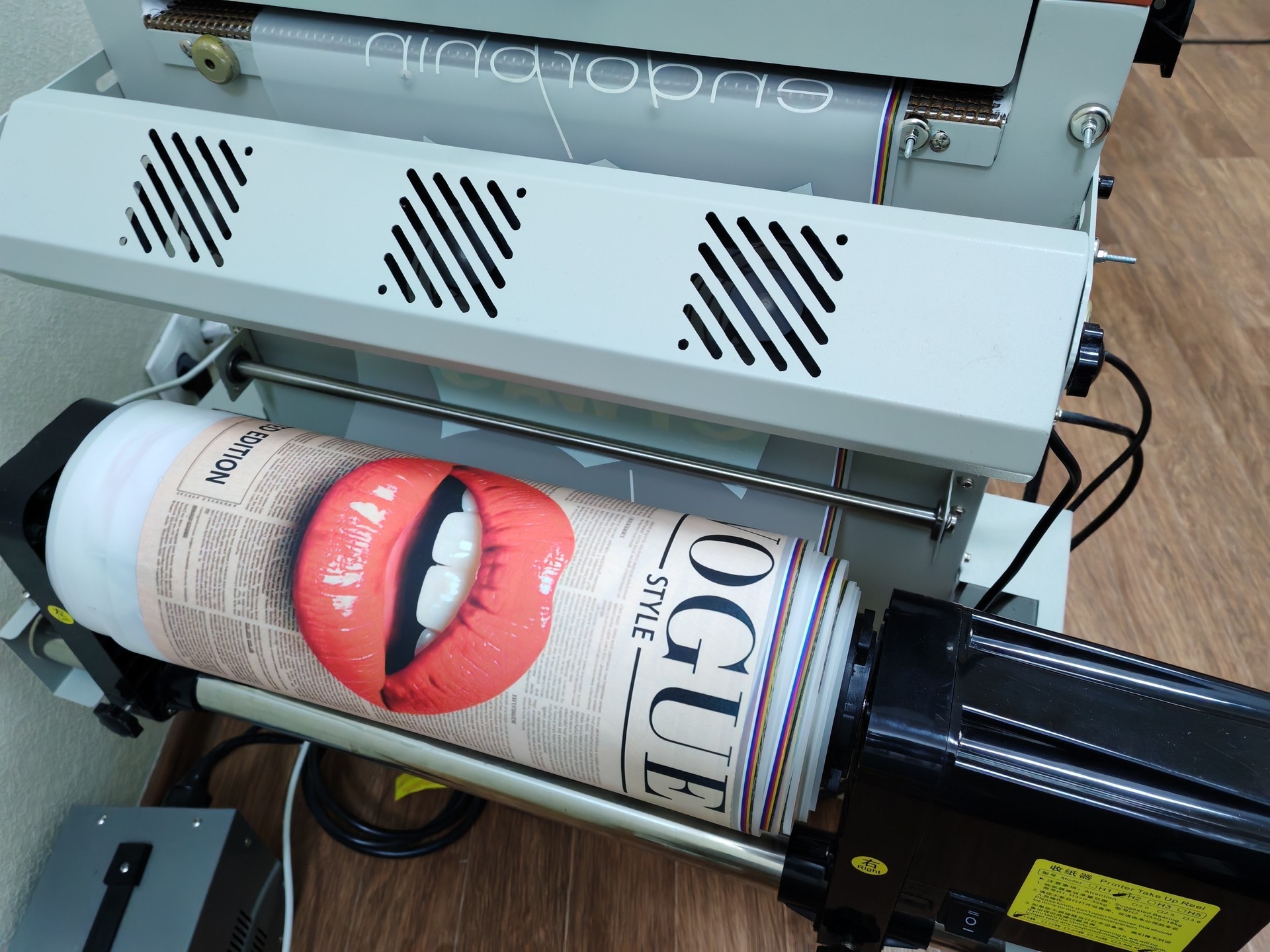 Две линии рулонной DTF-печати AUDLEY MAXI каждая с двумя печатающими головами i1600, для печати на плёнке шириной 30 см и плёнки шириной до 33 см. Комплекс является профессиональным оборудованием благодаря продуманной конструкции и высокому качеству сборки, данное оборудование обеспечивает стабильную и качественную печать.